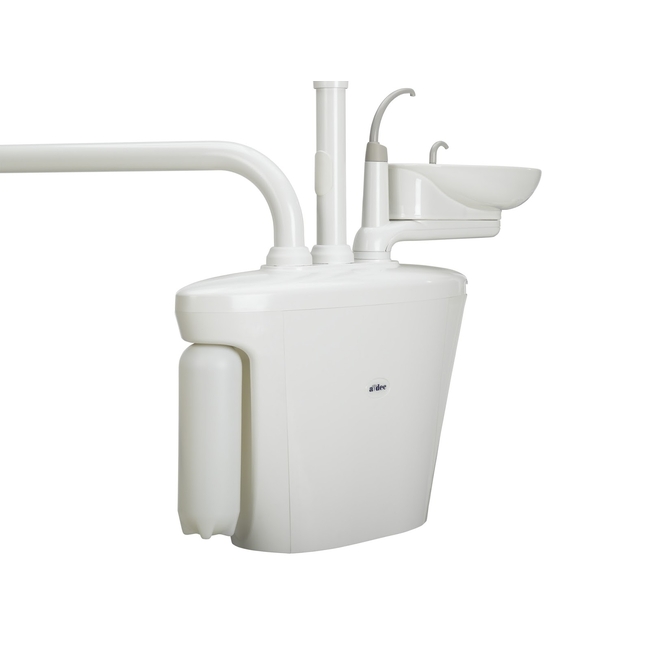 Большой столик с нижним подводом инструментов и сенсорным блоком управления. Предусмотрены: регулировка давления воды и воздуха, автоматический отделитель влаги, два крана для подключения компрессора, а также система «АнтиСПИД-антигепатит». Переключатель на влажный и сухой режимы располагается на ножной педали.