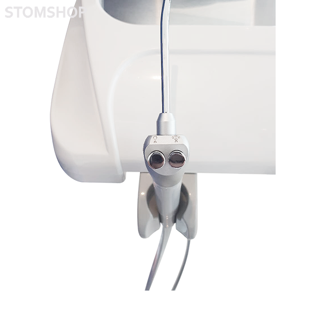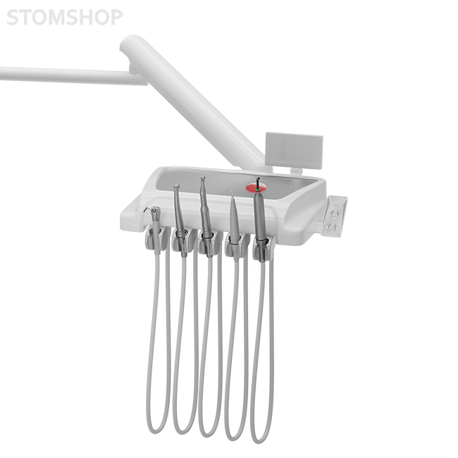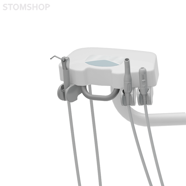 Блок ассистента на поворотном удлиненном кронштейне с пультом управления, оснащен держателями шлангов слюноотсоса и пылесоса.