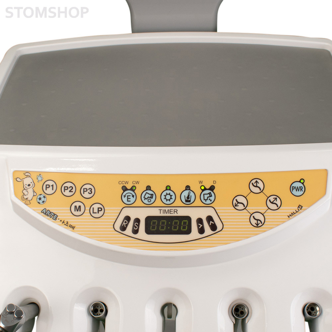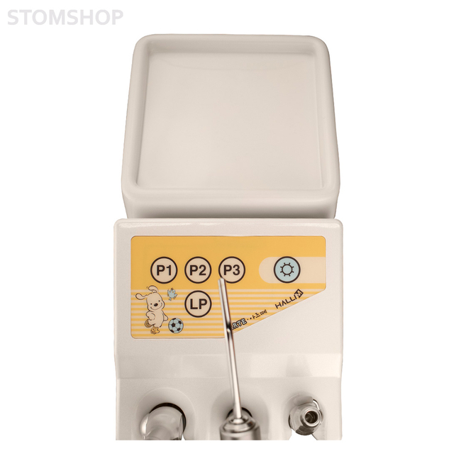 Современная стоматологическая установка Hallim предназначена для применения в детских стоматологических кабинетах. Тип подачи инструментов в установке – нижний, конфигурация кресла разработана непосредственно для детей южно-корейским производителем Hallim Dentech.