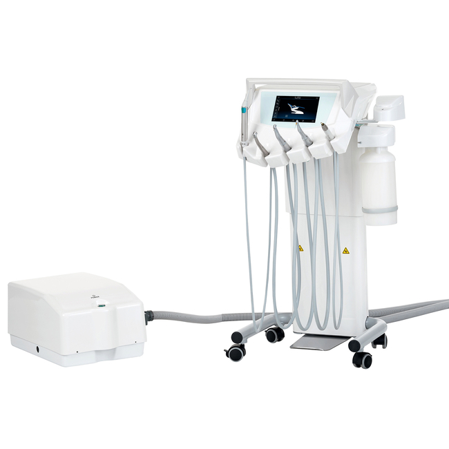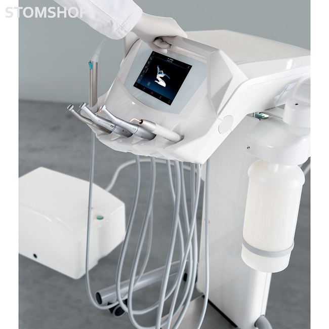 Подкатной блок врача S220 TR Cart расчитан на оснащение шестью инструментами. Большим плюсом является панель управления с LCD дисплеем визуализации, контроля параметров инструментов и устройств гигиены.