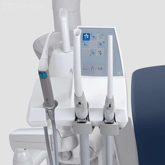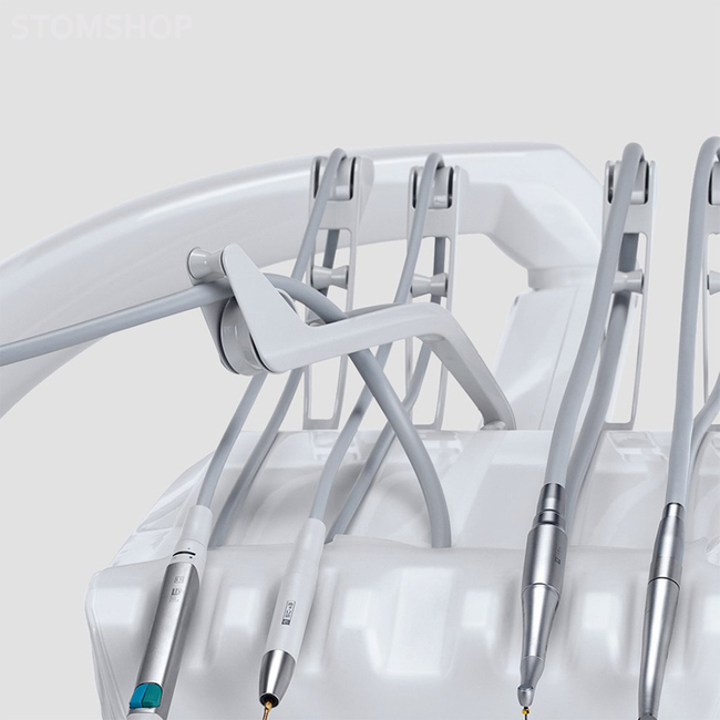 Оснащен 4 держателями для 2 шлангов аспирационной системы и 2 дополнительных инструментов. (дополнительный пистолет вода/воздух, встроенная камера C-U2). Установленный на плечо пантограф с двойным соединением и вертикальным диапазоном 34см.