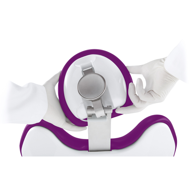 С креплением на стуле, оснащен керамическими чашей и плевательницей, совмещенными в один блок с углом вращения 160°. Съемный и дезинфицируемый стакан на плевательнице. Модуль подогрева воды, подаваемой в стакан на плевательнице. Предустановка для подключения мультимедиа.