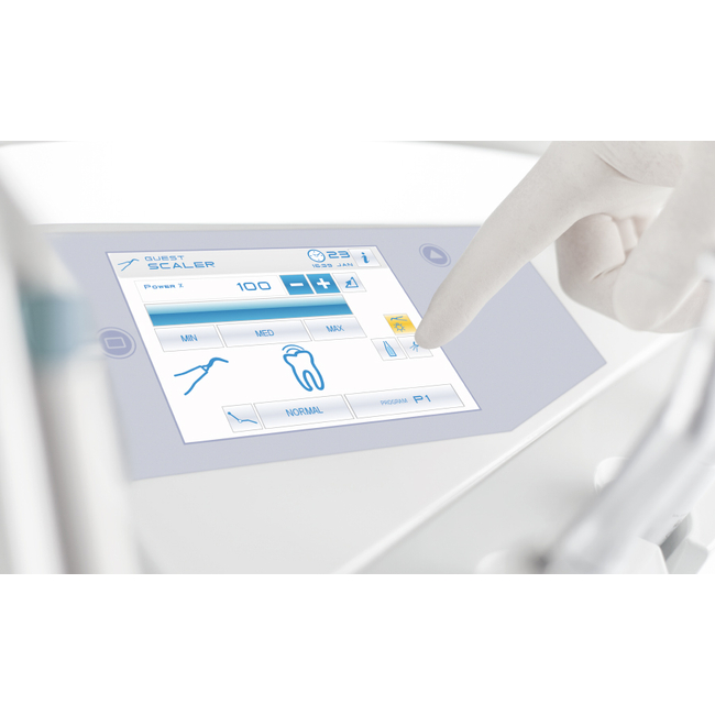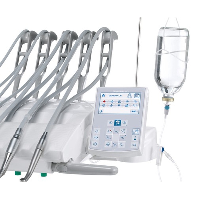 Система безопасности позволяет активировать только первый выбранный инструмент. Система с блокировкой отзыва инструментов (кроме пистолета вода/воздух). Турбины наконечников оснащены скоростным встроенным фитингом. Консоль врача оснащена цветным TFT диплеем.