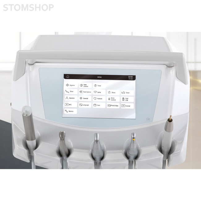Полностью сенсорная консоль с 7-дюймовым мультитач-дисплеем обеспечивает удобное управление функциями стоматологической установки. Врачи могут легко регулировать параметры инструментов, устанавливая индивидуальные настройки, и контролировать работу систем гигиены. Интегрированное программное обеспечение настроено для управления функциями установки при проведении работ по эндодонтии, имплантологии и консервативном лечении. Пользователи также могут просматривать на экране изображения, рентгеновские снимки и видеоуроки.