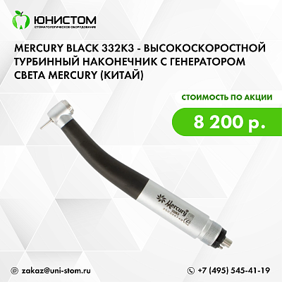 Описание Mercury Black 332K3 - высокоскоростной турбинный наконечник с генератором света | Mercury (Китай)