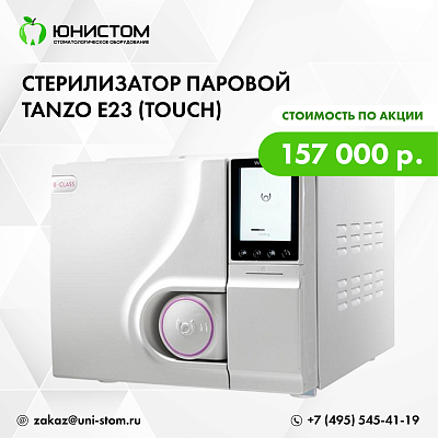 TANZO E23 - время стерилизации сокращено на 20% по сравнению с предыдущей версией. Оснащен новым LCD дисплеем с удобным управлением.