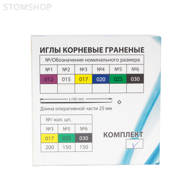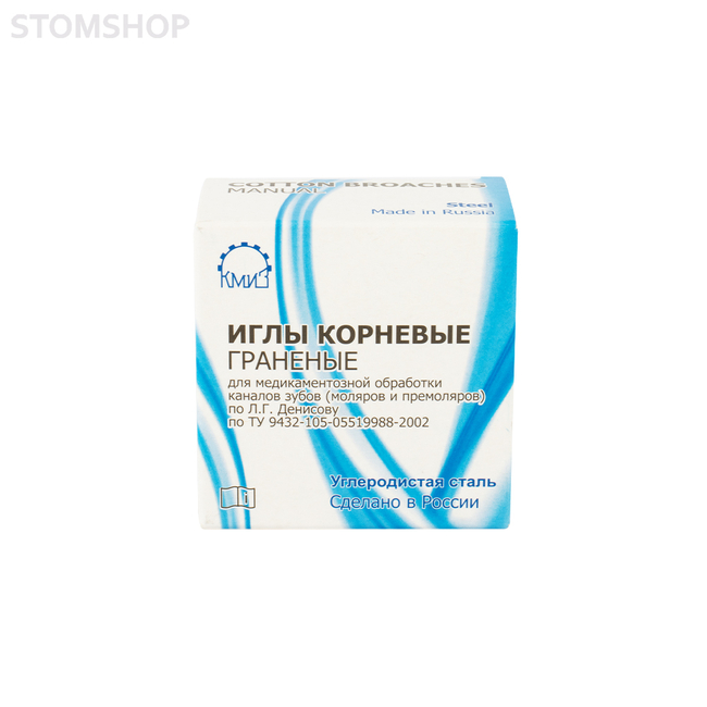 Иглы корневые предназначены для медикаментозной обработки каналов зубов. Иглы корневые граненые предназначены для введения лекарственного вещества в канал с помощью ватных турунд. Иглы могут быть изготовлены как из углеродистой, так и из нержавеющей стали. Для более удобного удержания в руке инструмента в ассортименте имеются иглы с накаткой на рукоятке.