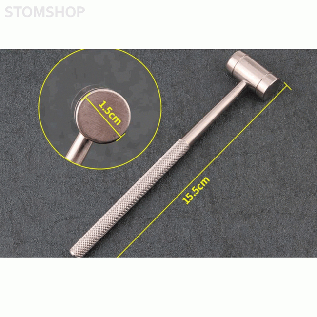Molt Silver – молоток хирургический маленький для работы с остеотомами, долотами и пинодержателями. Цельнометаллическая рабочая часть с двумя поверхностями диаметром 15 мм каждая, предназначенными для нанесения удара по хирургическому долоту и остеотому. Длина 15.5 см. Диаметр бойка 15 мм. Вес 140 г.