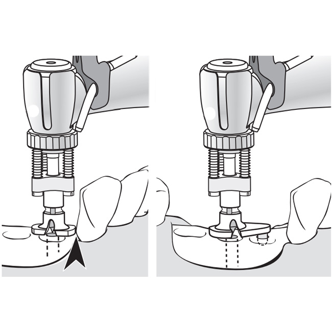 Шаблон расстояния с центровочным сверлом и втулкой монтируются на головку углового наконечника WS-75 E/KM или WI-75 E/KM от бренда W&H. Работа с системой IDS проводится по следующему сценарию: