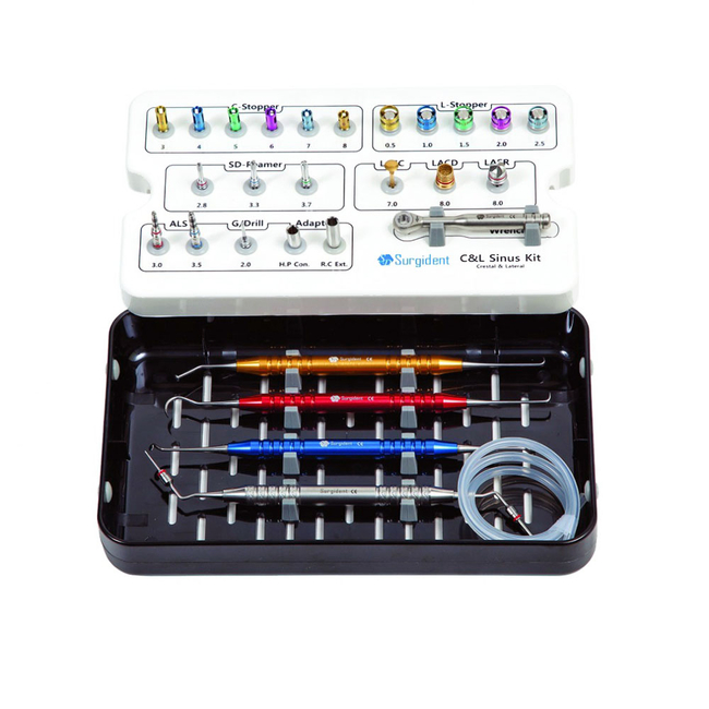 C and L SINUS KIT – набор хирургических инструментов для открытого синус-лифтинга. В набор входят фрезы для получения доступа и кюреты для мануального подъема мембраны.