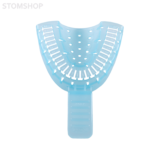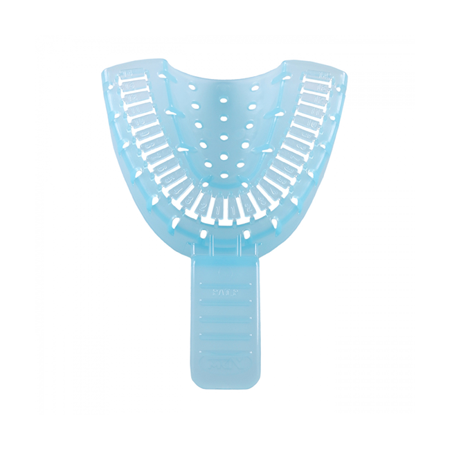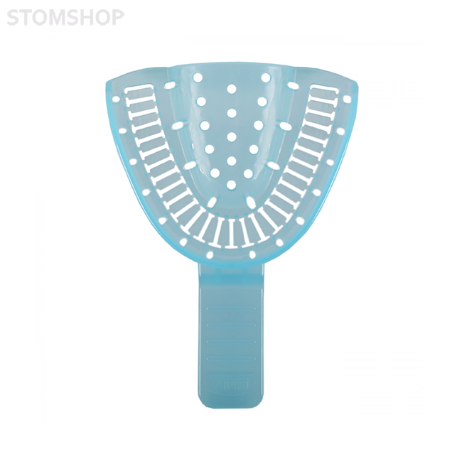 Ложка слепочная для имплантов, пластмассовая (одноразовая) для верхней челюсти, 77×58 мм, голубая, с возможностью удаления сегментов. 5 штук в комплекте.