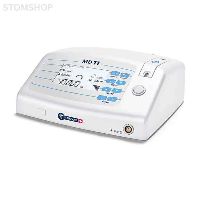 Микропроцессорный одномоторный физиодиспенсер Nouvag MD 11 предназначен для использования в имплантологии и микрохирургии. С помощью данной системы возможно проведение сверления, шлифовки, полировки и ввинчивания шурупов (установка имплантатов). Прибор имеет также специальные программы для пил, дерматомов и мукотомов.