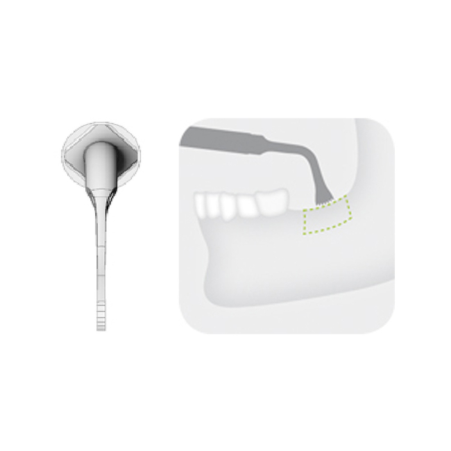Насадка с мелкими зубьями для тонких разрезов с минимальной потерей кости при удалении костных блоков.