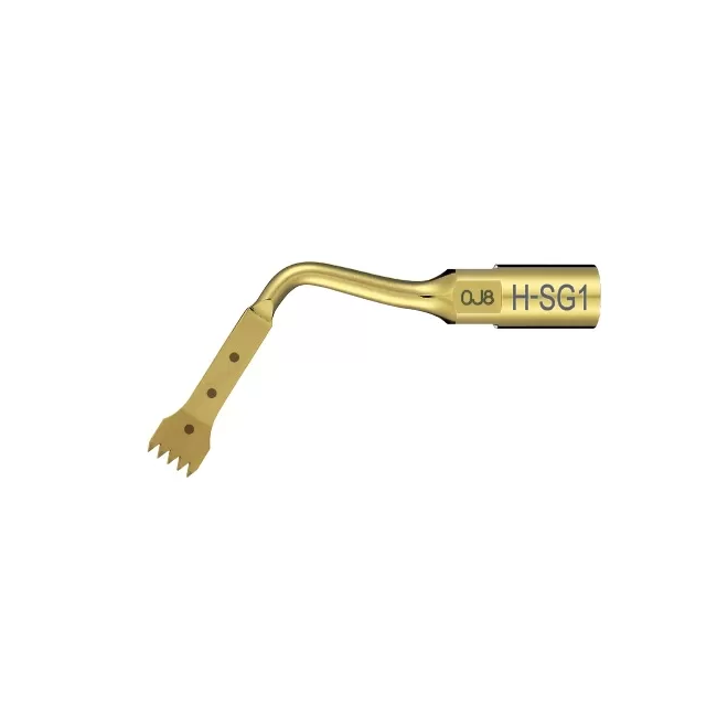 H-SG1 – насадка для ультразвуковой костной хирургии, предназначена для забора костной ткани с подбородка, особенно для подбородочного отверстия и нижнечелюстного альвеолярного гребня. Форма зубцов обеспечивает наиболее эффективную работу насадки при рассечении костной ткани. Насадка оптимизирована для работы с хирургической системой VarioSurg3.