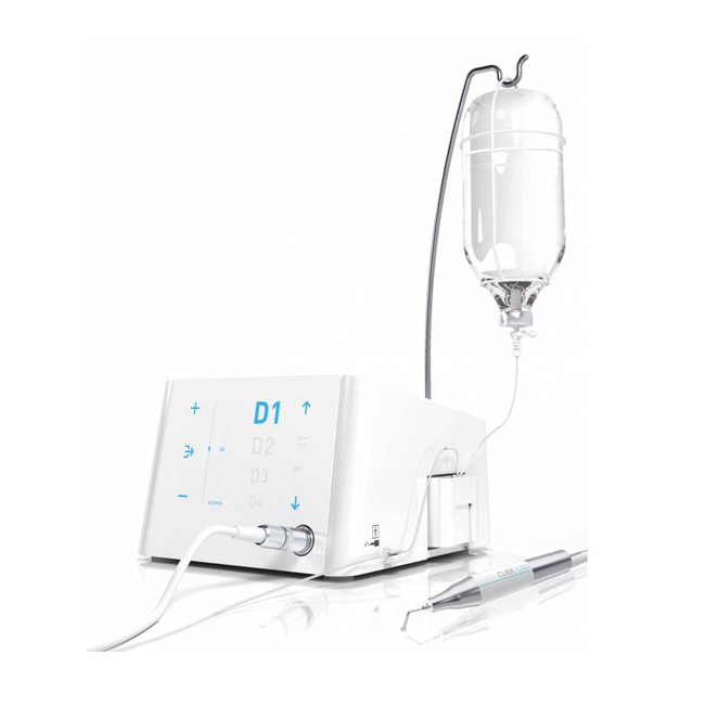 Кратковременный локальный нагрев костной ткани всего на 3-4 градуса неизбежно приведет к необратимым изменениям в ее структуре и существенно снизит вероятность положительного результата всего оперативного вмешательства. Высокопроизводительная перистальтическая помпа обеспечивает подачу ирригационного раствора в самом широком диапазоне объема среди пьезохирургических систем на мировом рынке. Сенсорные кнопки с подсветкой, расположенные на стеклянной панели прибора, предназначены для управления скоростью потока в диапазоне от 10 до 120 мл\мин с шагом в 10 мл\мин, в то время как текущее значение отображается на вертикальной шкале.