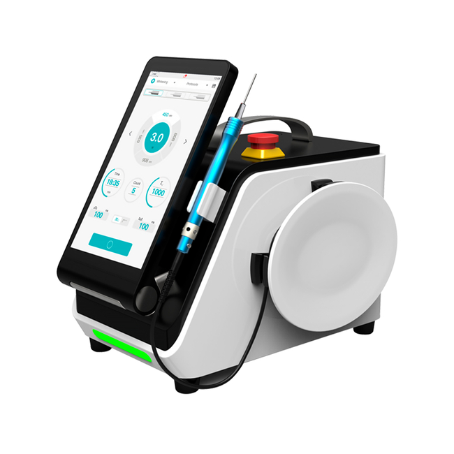 Особое внимание стоит уделить синему лазерному лучу 450 нм, который успешно применяется в хирургии, мягко разрезает ткани и обеспечивает быстрое заживление. Также к достоинствам лазера следует отнести его программное обеспечение на OС Android, которое отличается простотой и легко обновляется по сети wi-fi. На цветном сенсорном экране воспроизводятся все параметры, что облегчает работу с аппаратом. Безопасность обеспечивается наличием встроенной воздушной системы охлаждения.