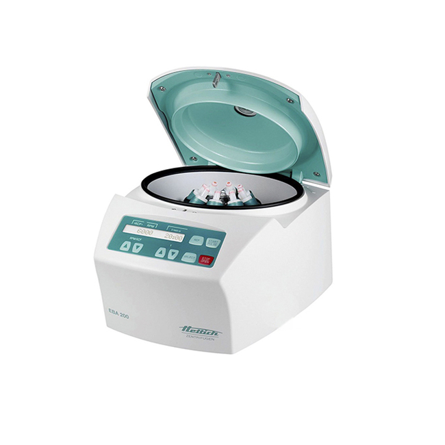 Модель Hettich EBA 200 – это практичная малая центрифуга для небольших объемов проб. В стандартной комплектации оснащена 8-местным угловым ротором для размещения пробирок объемом до 15 мл.