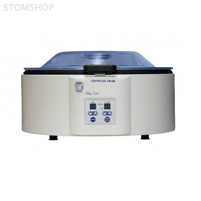 CM-6M – настольная лабораторная центрифуга с ротором 6М.01 в комплекте (4 пробирки по 50 миллилитров). Применяется для разделения растворов, в том числе крови и мочи, на фракции. Используется в микробиологии, вирусологии, стоматологии, клинической биохимии, биологии, аналитической химии и т.д.