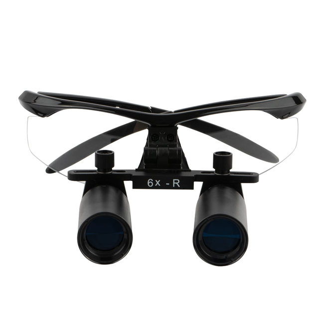DH6.0X + BP frame – ультралегкие бинокулярные лупы на усиленной спортивной оправе, оптическая система Flip-up, увеличение 6.0X.