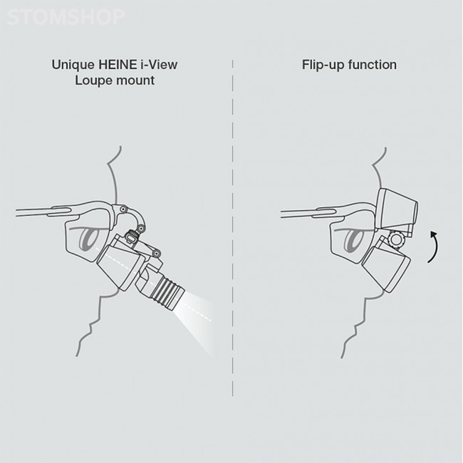 • Крепление для луп i-View обеспечивает любой угол обзора и может поднимать оптику независимо от положения луп и осветителя LED LoupeLight.