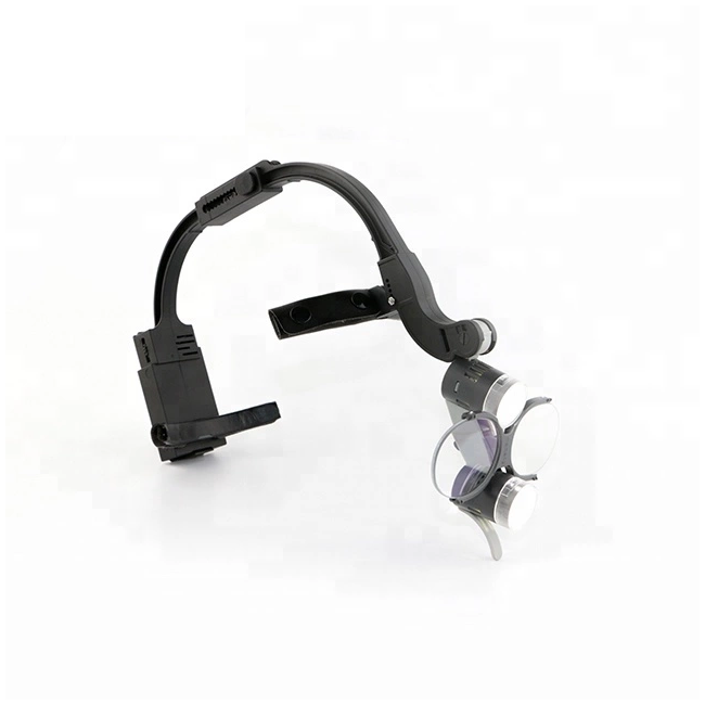 Легкая и прочная пластиковая дуга весом всего 110 г имеет двухточечное крепление на голове и ряд дополнительных регулировок для удобства посадки. Два мощных LED источника света с регулируемой яркостью до 100000 Lx создают бестеневое рабочее поле. Цветовая температура 5117 К приближена к дневному свету для комфортной длительной работы. Включение и выключение осветителя происходит за счет перемещения блока осветителей в крайнее нижнее и верхнее положение соответственно. Быстрая замена аккумулятора в затылочной части обеспечит непрерывную работу в течение всего рабочего дня. Продуманная до мелочей система крепления оптических элементов позволяет их менять легко и быстро. При отсутствии необходимости в осветителе достаточно просто перевести его в верхнее положение, открыв лицо. В комплектацию входит 3 набора светофильтров.