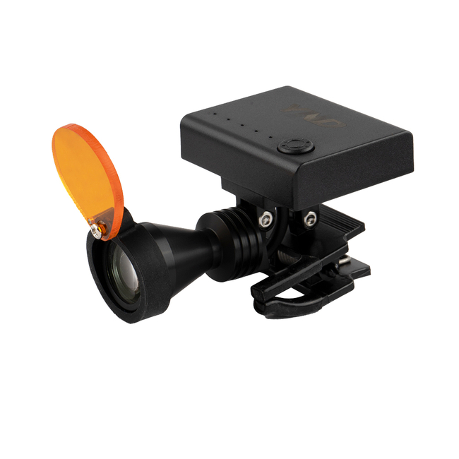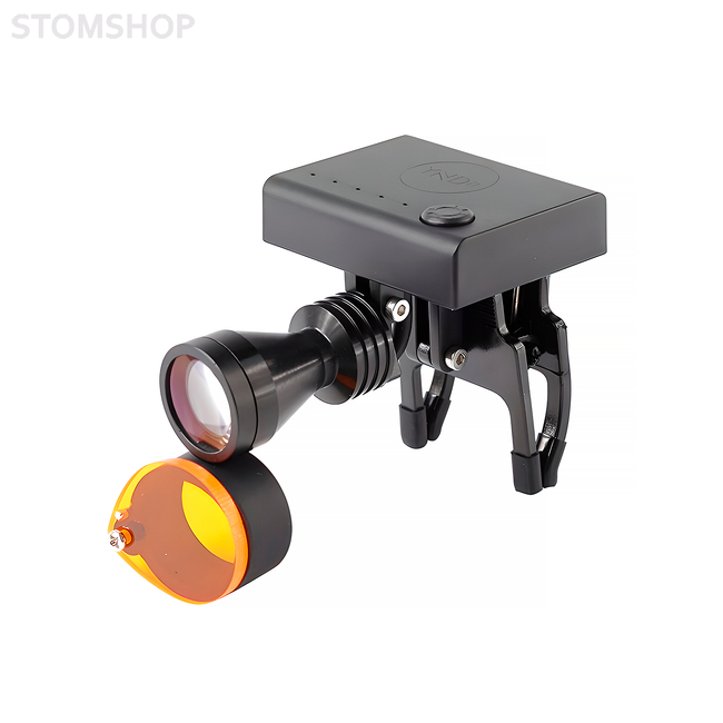 YND-WB6RL5 – каплановский свет для бинокуляров с двумя беспроводными батареями в комплекте и мощностью освещения 17500 люкс. Легкий светодиодный осветитель крепится на оправу бинокулярных луп с помощью прищепки.