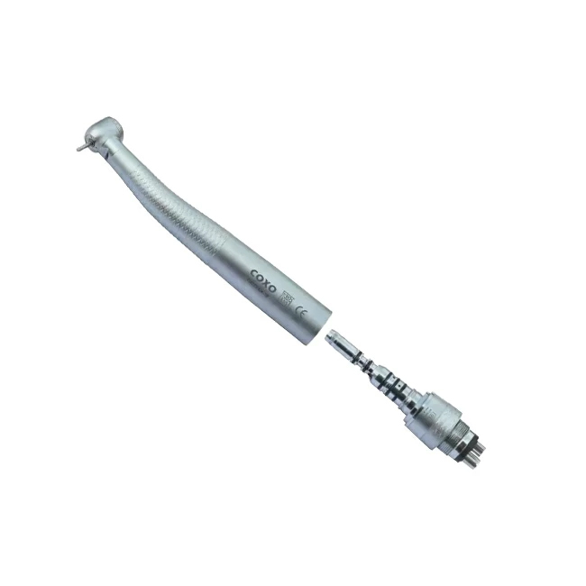 Турбинные наконечники COXO отличаются высоким уровнем производительности. Подсветка моделей с фиброоптикой гарантирует постоянную видимость каждого участка обрабатываемой поверхности. Система подачи воды обеспечивает оптимальное охлаждение благодаря тончайшему распылению спрея. Дизайн корпуса наконечников и легкий сплав позволяют добиться идеального угла расположения головки даже при работе в труднодоступных участках. Все турбинные наконечники разработаны и созданы для качественной работы специалиста с минимальным приложением усилий с его стороны. Некоторые модели оснащены быстросъемными соединениями для удобства использования.