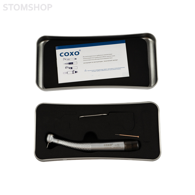 Турбинные наконечники COXO отличаются высоким уровнем производительности. Подсветка моделей с фиброоптикой гарантирует постоянную видимость каждого участка обрабатываемой поверхности. Система подачи воды обеспечивает оптимальное охлаждение благодаря тончайшему распылению спрея. Дизайн корпуса наконечников и легкий сплав позволяют добиться идеального угла расположения головки даже при работе в труднодоступных участках. Все турбинные наконечники разработаны и созданы для качественной работы специалиста с минимальным приложением усилий с его стороны. Некоторые модели оснащены быстросъемными соединениями для удобства использования.
