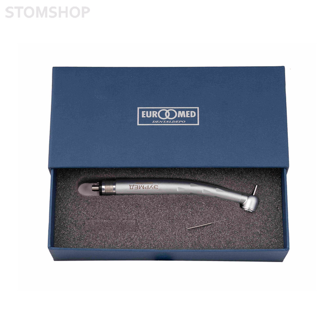 Наконечник стоматологический турбинный ЭУРМЕД Т-001 соединяется со шлангом стоматологической установки с разъемом типа Midwest без фиброоптики с резьбовым соединением. Приводится в движение потоком сжатого воздуха, который подается на ротор турбины, расположенный внутри головки наконечника. Скорость вращения до 300 000 об/мин.