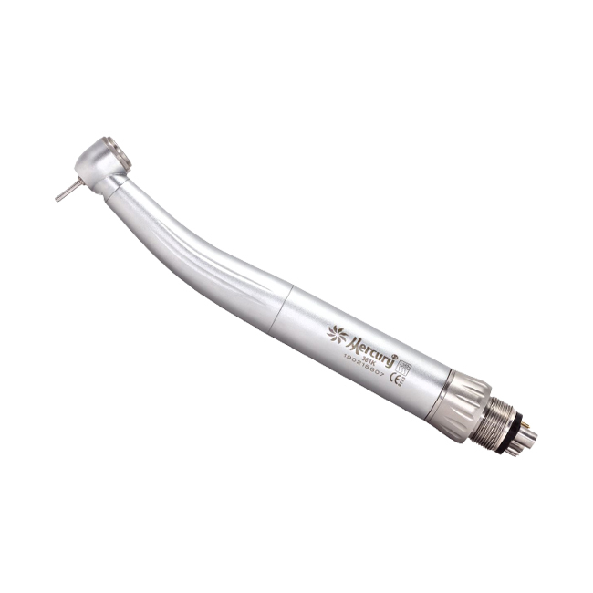 Турбинный наконечник Mercury 381K подходит для работ любой сложности. Частота вращения бора составляет 420 000 об/мин. Это очень хороший показатель для турбинных наконечников. В комплекте с наконечником идет запасная роторная группа.
