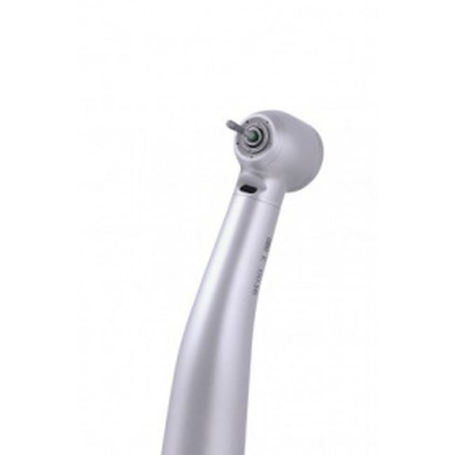 Он представляет собой мощную турбину со световодом с оптикой из сотообразного стекла и кнопочным зажимом для бора, с 3-х точечной системой охлаждения препарационного инструмента.