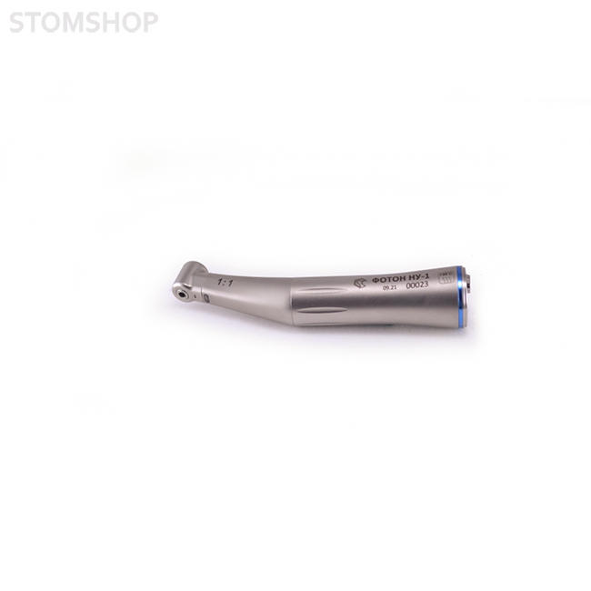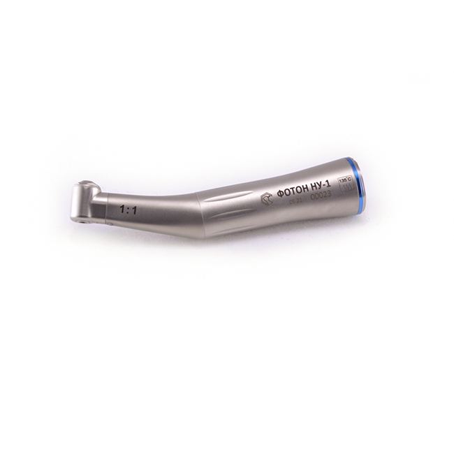 Угловой наконечник Фотон НУ-1 со встроенными световодом и распылителем для использования в ортопедической и терапевтической стоматологии.