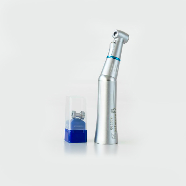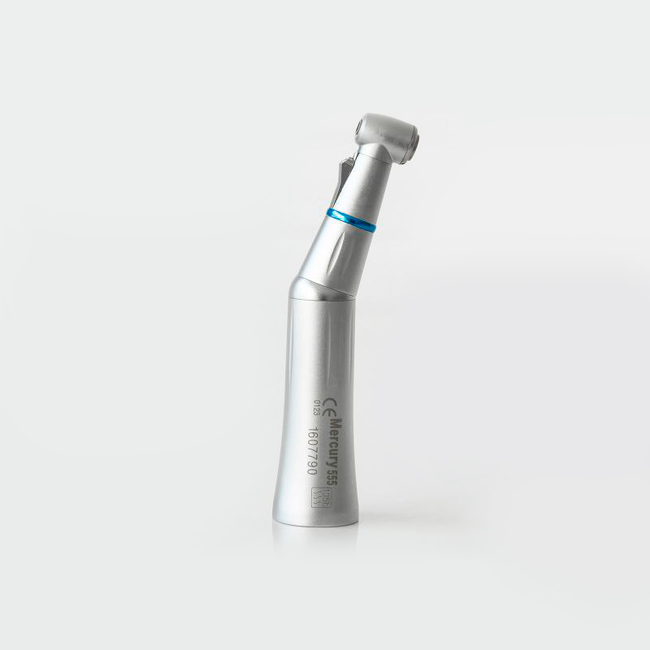 Mercury 555 - угловой наконечник с генератором света, внутренним охлаждением и кнопочным зажимом бора, 1:1, для FG-боров 1,6 мм.
