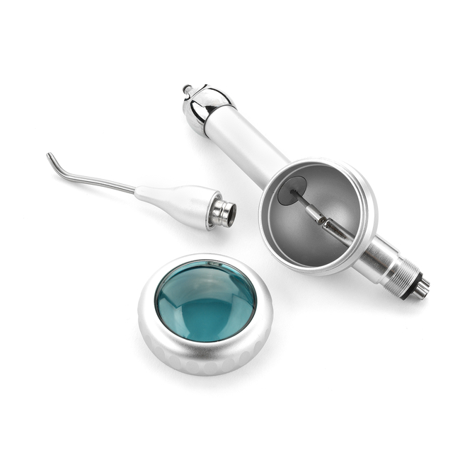 Air-Flow Prophy Unit M4 TDP-II - cистема для удаления зубного налета и полирования зубов методом содоструйной обработки. Принцип работы основан на создании под давлением воздуха аэроабразивной смеси, состоящей из порошка бикарбоната натрия с определенным размером частиц и воды. Образующийся спрей быстро и безболезненно удаляет бактерии, мягкий налет и межзубные отложения. Сопло съемное, автоклавируемое, вращается на 360 градусов.