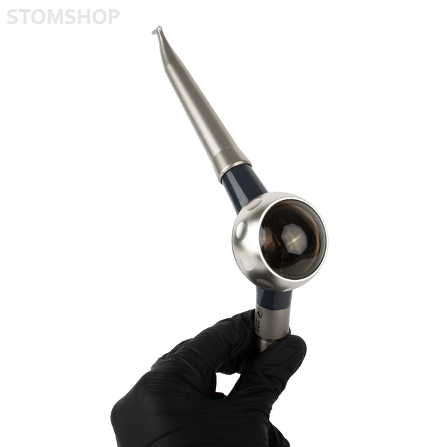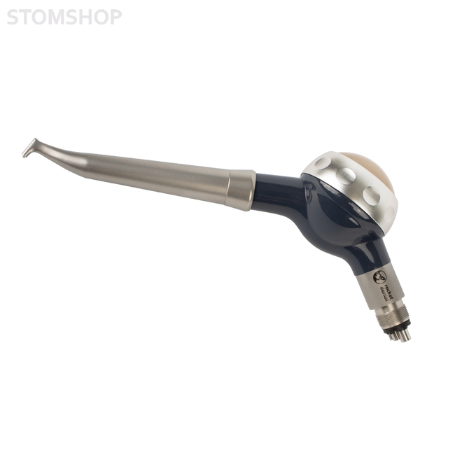 Система для удаления зубного налета и полирования зубов методом пескоструйной обработки. Принцип работы основан на создании под давлением воздуха аэроабразивной смеси, состоящей из порошка с определенным размером частиц и воды. Образующийся спрей быстро и безболезненно удаляет бактерии, мягкий налет и межзубные отложения. Стандартное соединение M4.