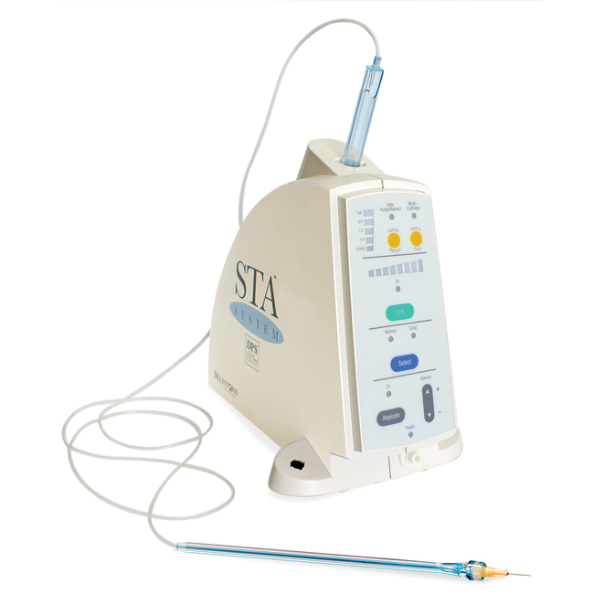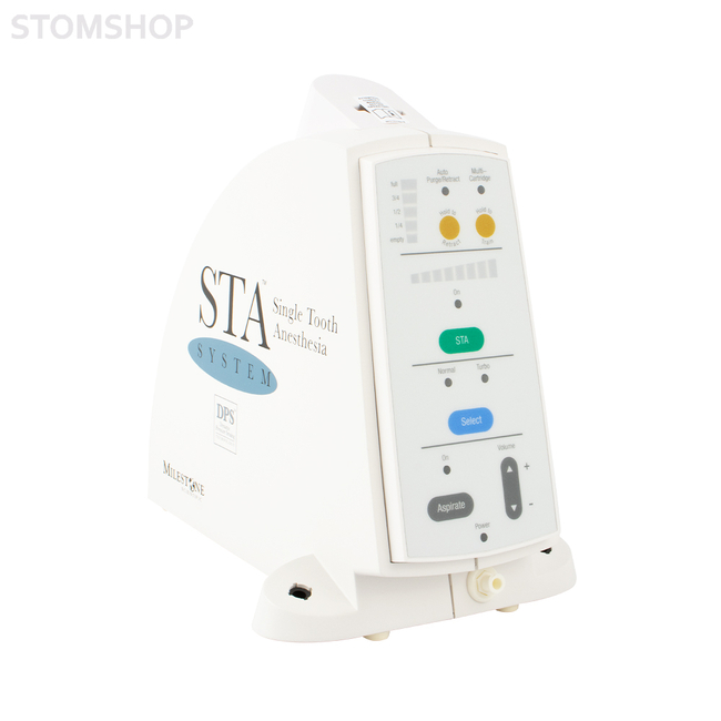 Аппарат CompuDent STA Drive Unit представляет собой компьютеризированную систему для проведения любой традиционной местной анестезии в стоматологии. Комплект состоит из базового блока, ножной педали управления, наконечника со встроенной иглой различных размеров и держателем картриджа в стерильной упаковке (одноразовая система). Система CompuDent STA обеспечивает контролируемый микро-процессором поток раствора анестетика. При этом используется лёгкий и безопасный наконечник, который позволяет прекрасно контролировать направление движения иглы. Система CompuDent STA также позволит Вам более комфортно проводить любой вид традиционной анестезии, используя любой анестетик по Вашему выбору, при этом снижая его дозировку.