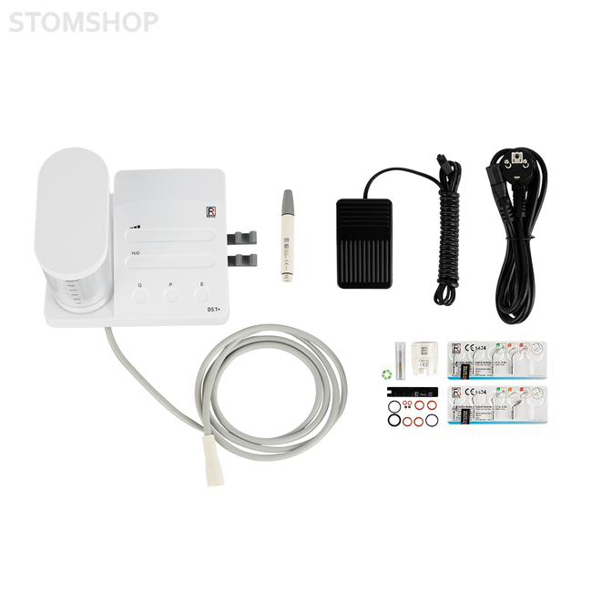 DS7+ – многофункциональный автономный ультразвуковой скалер с подсветкой. В комплекте наконечник для работы с насадками стандарта NSK/Satelec и набор насадок.