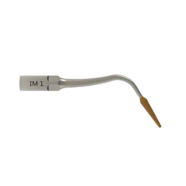 IM1 – насадка для очистки имплантатов от налета и зубного камня. Рабочая часть покрыта специальным мягким материалом. Подходит для использования со скалерами стандарта EMS.