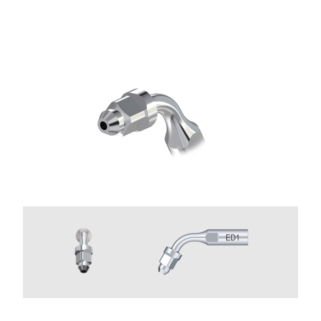 Для скалеров DTE, Satelec, NSK. Насадка ED1 (Эндочак) эндодонтическая, 120 градусов, для работы в корневых каналах фронтальных зубов. Не подходит к Maillefer.