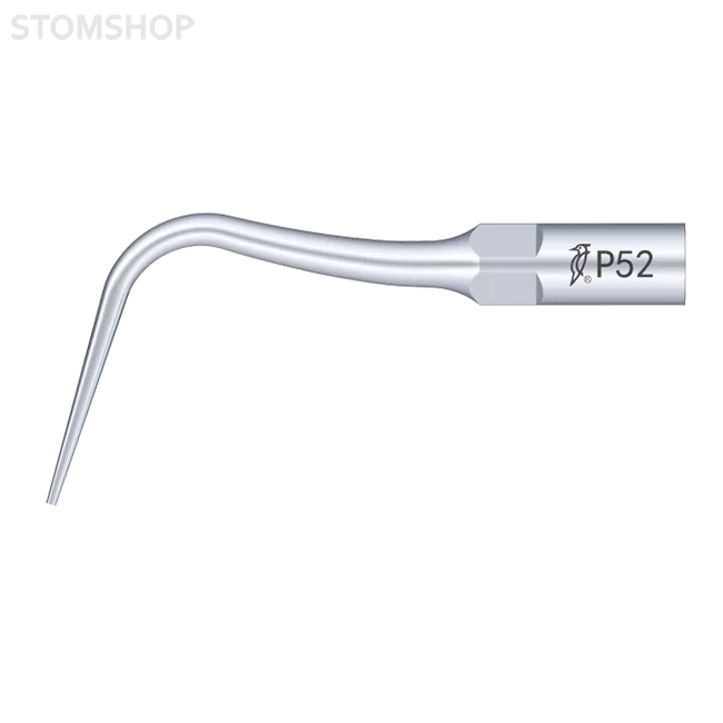 Насадка P52 для скалеров Woodpecker, пародонтологическая. Используется для удаления зубного камня с щечной и язычной поверхности зубов. Общая длина 20 мм, длина после изгиба 16 мм, диаметр кончика 0,85 мм. Произведена из титанового сплава, можно стерилизовать в автоклаве при температуре 135 °С до 300 раз. Подходит к DTE PT5 Master LED, DBA PT3 и другим скалерам со стандартом насадок EMS.