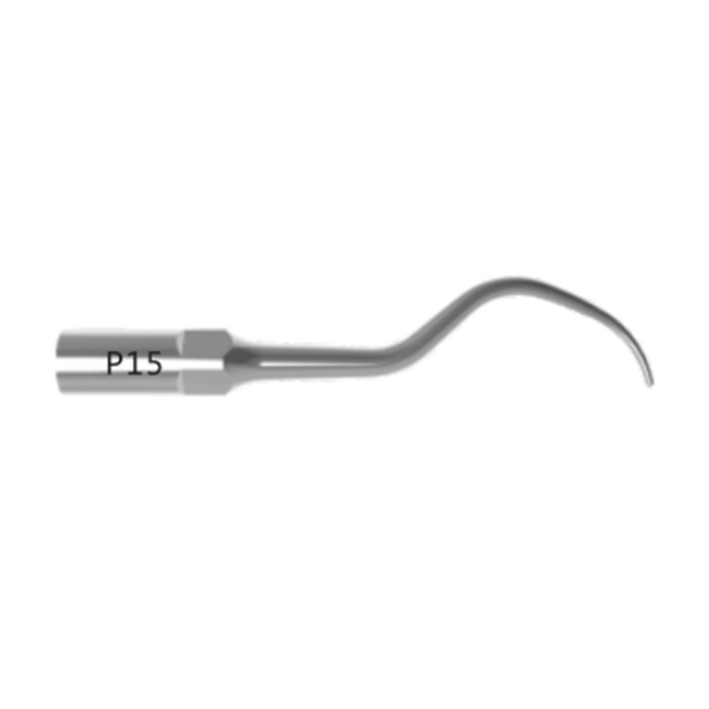 P15 – насадка с крюкообразным наконечником, используется для удаления зубного камня из межзубных промежутков и неглубоких пародонтальных карманов. Подходит для использования со скалерами стандарта EMS.