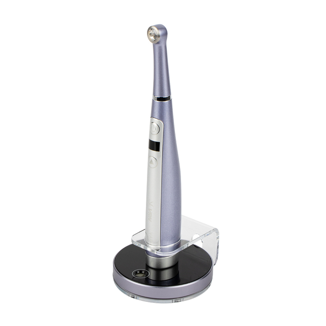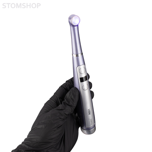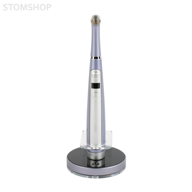 VRN Vafu – беспроводная светополимеризационная лампа повышенной мощности в комплекте со сменным наконечником, кариес-детектором и беспроводной зарядной станцией со встроенным радиометром. Она оборудована четырьмя светодиодами с тремя разными вариантами длины волны, охватывающими спектр 385-515 нм. Это позволяет максимально эффективно работать с современными светоотверждаемыми материалами. Высочайшая интенсивность светового потока позволяет проникать сквозь керамику и полимеризовать базовые цементы на основе смолы подобно качественному галогеновому свету.