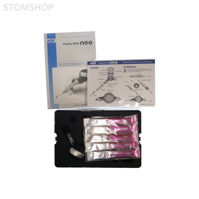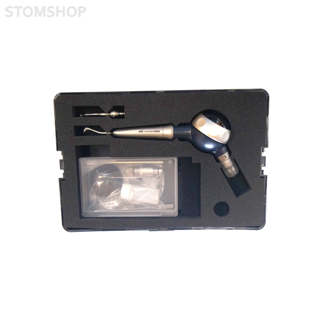 Усовершенствованная система Prophy-Mate neo – это удобство форм и отличная функциональность. Легкость, yпрекрасная балансировка, компактная камера для порошка, наконечник NSK, вращающийся на 360° даже при высоком давлении, делают данную систему отличным инструментом для врача. Данная система сокращает время снятия зубного камня и налета. Имеются насадки с углом 60° и 80°.