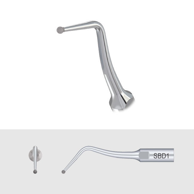 Насадка SBD1 с алмазным покрытием (85 мкм) для препарирования кариозной полости на окклюзионной поверхности зубов и на шейке зуба. Совместима со скалерами DTE, NSK, Satelec.