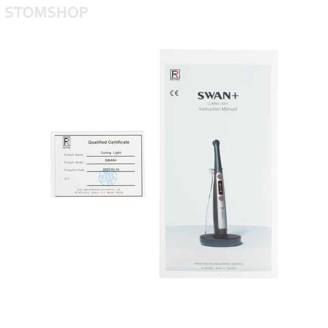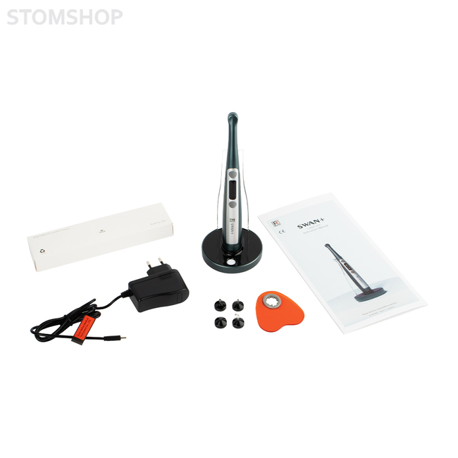 Swan+ – беспроводная светодиодная лампа высокой мощности с комплектом магнитных насадок для точечной полимеризации. Подходит для всех популярных материалов.
