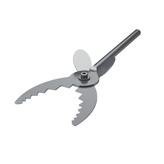 Вилка для беззубых челюстей. Устанавливается в лицевую дугу Bio-Art Standard Facebow вместо стандартной вилки. Конструкция с двумя регулируемыми ободами позволяет легко адаптировать вилку к альвеолярному гребню при работе с беззубыми пациентами, а также с пациентами с разной шириной зубной дуги.