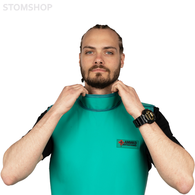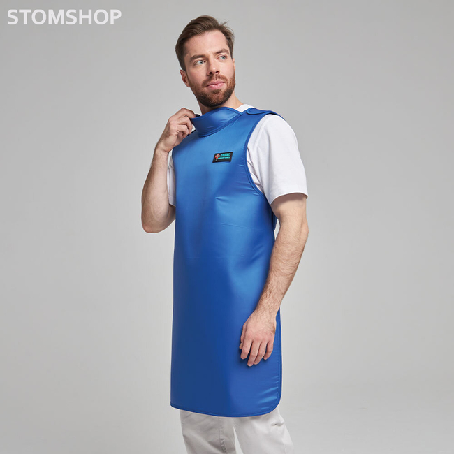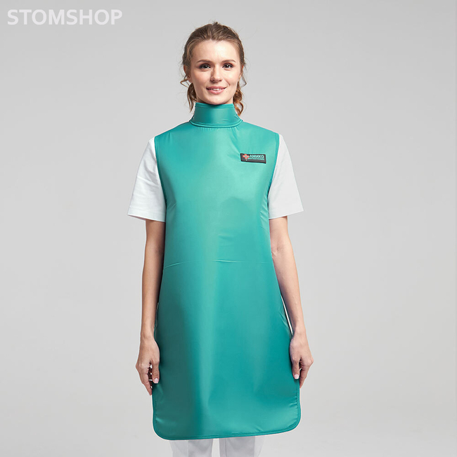 Эта модель с воротником-стойкой произведена непосредственно для стоматологических исследований. Свинцовый эквивалент - 0,25 мм Pb. Вес: 2,7 кг (винил), 2,9 кг (резина).