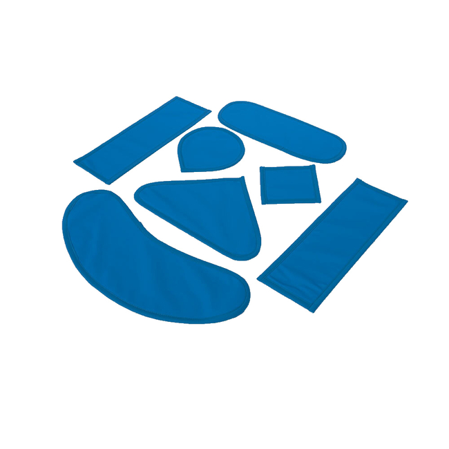 Комплект защитных пластин состоит из 7 элементов различного размера и формы, предназначен для защиты отдельных органов пациента при рентгенологических исследованиях.