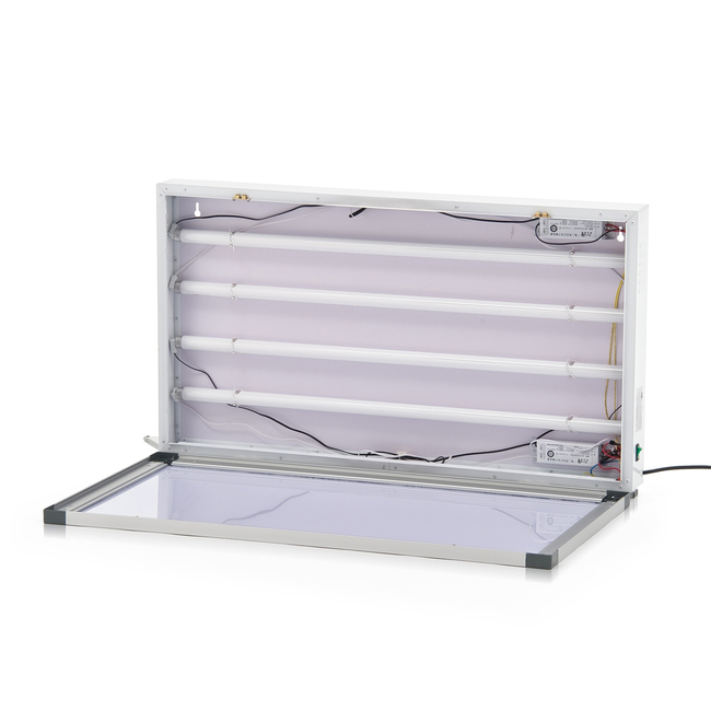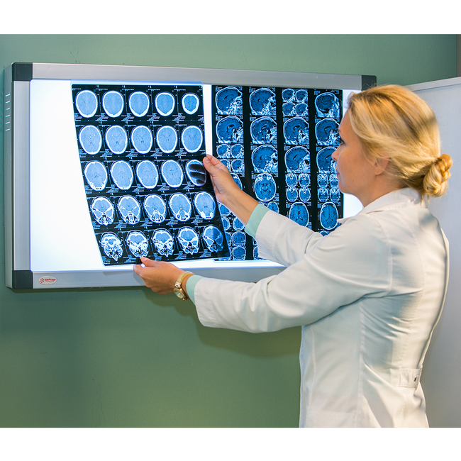 Прибор оборудован люминесцентными лампами, которые обеспечивают яркое свечение. Благодаря матовому смотровому экрану из прочного акрилового стекла, свет рассеивается равномерно для комфортного чтения рентгенограмм.