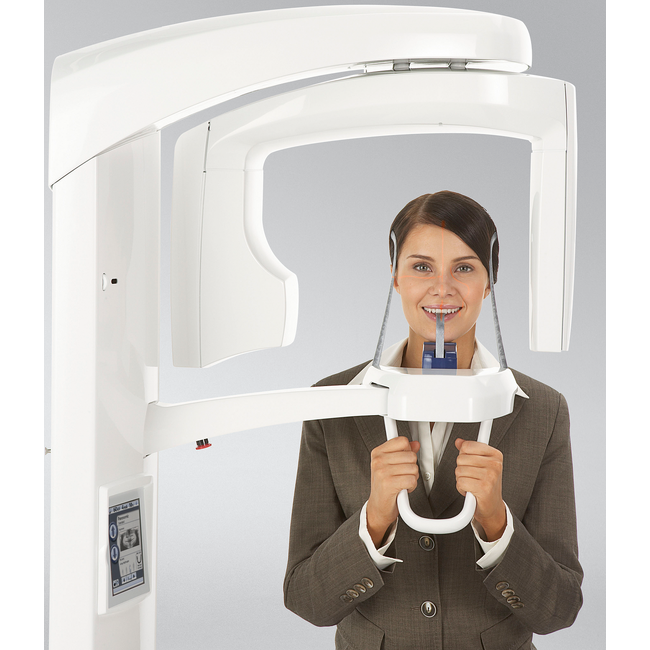 Чтобы свести к минимуму ошибки, вызванные неправильным позиционированием пациента, Planmeca ProOne и все остальные рентгеновские аппараты имеют возможность открытого позиционирования и удобного доступа сбоку как для стоящих, так и для сидящих пациентов. Вы можете контролировать пациента спереди и сбоку, позиционирование пациента осуществляется с помощью удобной системы трех лазерных лучей, указывающих правильные анатомические точки позиционирования.